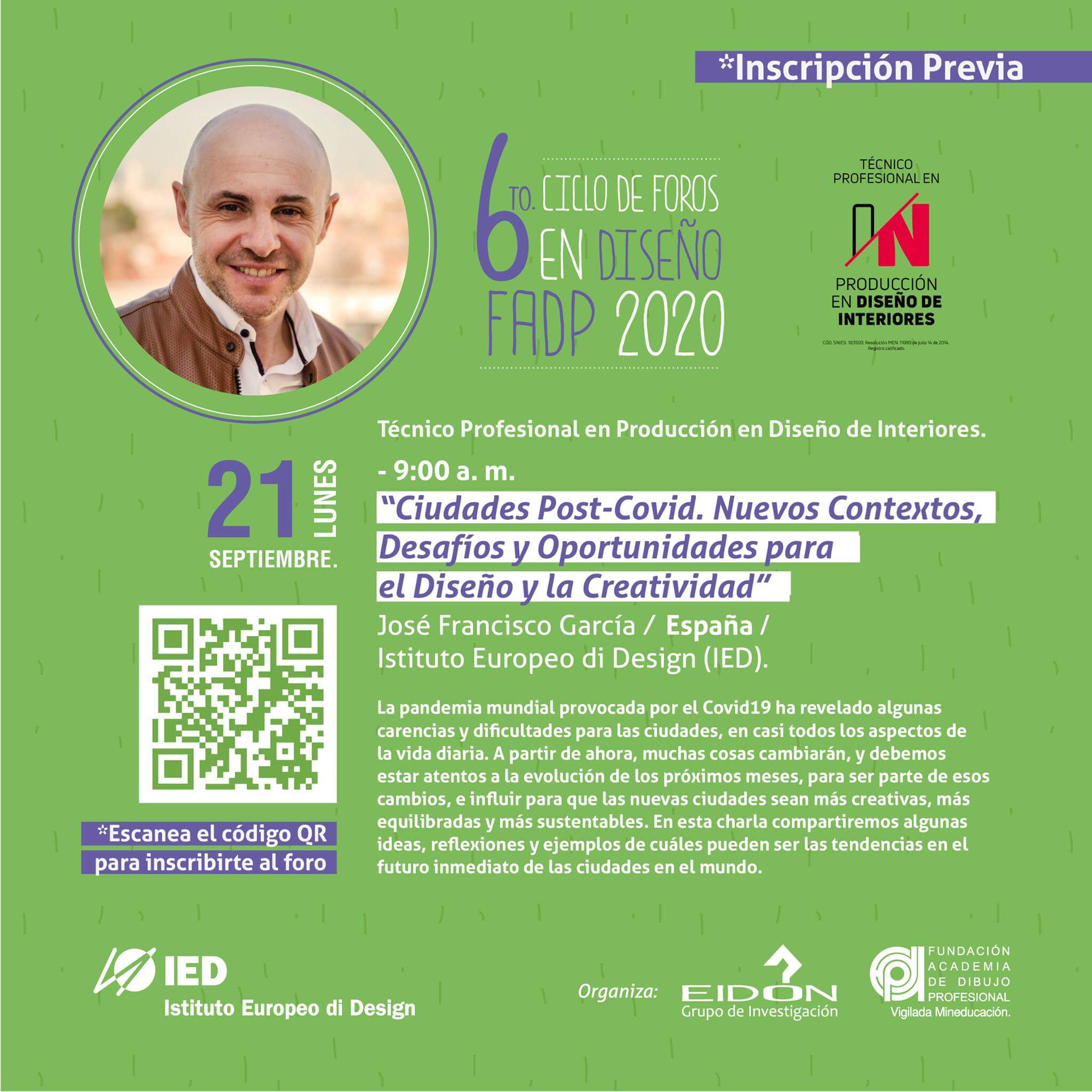 El programa Técnico Profesional en Producción en Diseño de Interiores y el Istituto Europeo di design (IED) invitan a la comunidad académica a participar de la conferencia “Ciudades Post-Covid. Nuevos Contextos, Desafíos y Oportunidades para el Diseño y la Creatividad” en el marco de nuestros 6to Ciclo de Foros en Diseño FADP.