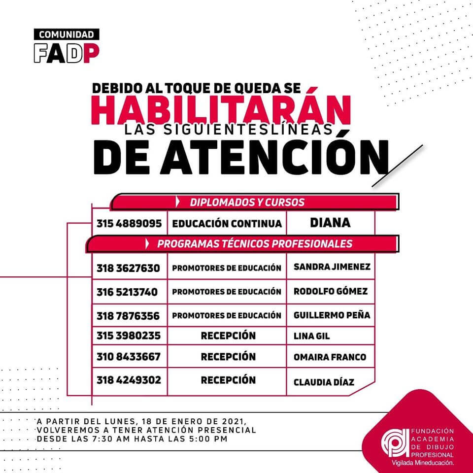 Debido al toque de queda de este Fin de Semana, se habilitarán estas las líneas telefónicas para asesorías en procesos de matrículas, para el viernes 15 de enero de 8:00 am a 5:00 pm y sábado 16 de enero de 8:00 am a 1:00 pm. Si necesitas comunicarte con otra área por favor consulta el […]