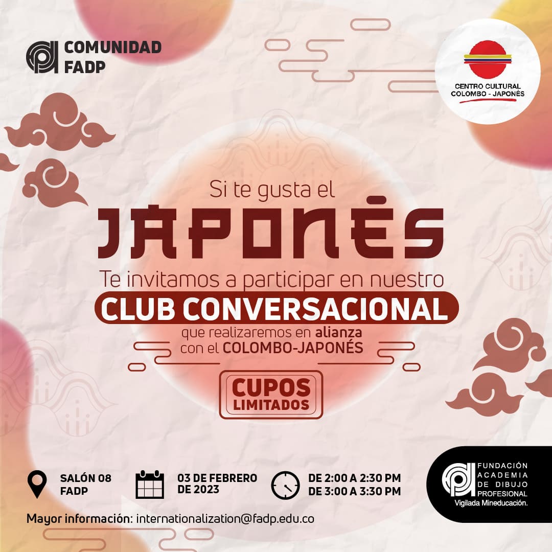 Comunidad FADP 🇯🇵🏯🎎 Con el fin de ampliar la Internacionalización y la Interculturalidad. Te invitamos al nuestro Club Conversacional que realizaremos en alianza con el Colombo Japonés el día 03 de febrero del 2023. Recuerda que son cupos limitados. #ComunidadFADP #Japon #ColomboJapones #CulturadelSolNaciente Link de Redirección: https://www.instagram.com/p/Cnh0BKDvKho/