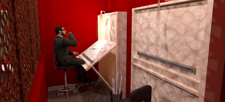 La Sala Roja está diseñada para fomentar la energía, la creatividad en las actividades de trabajo en equipo, proyectos colaborativos. Su vibrante color rojo crea un ambiente estimulante y dinámico que ayuda a mantener altos niveles de energía, motivación. El mobiliario incluye mesas altas que facilitan el trabajo colaborativo y la interacción entre los usuarios, así como pizarras o paneles para dibujar y realizar lluvias de ideas de forma visual. El ambiente se complementa con arte inspirador, música motivadora, que ayudan a estimular la creatividad y mantener el flujo de ideas.