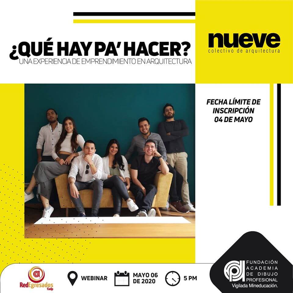 Participa en el Webinar realizado por “Nueve Colectivo Arquitectura”; Una apuesta de emprendimiento en arquitectura con una estructura de funcionamiento horizontal. Link de Inscripción: http://ow.ly/w8Oe30qATei