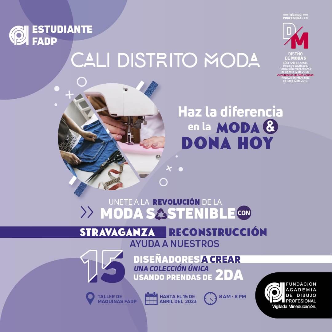 ¿Estás buscando una forma de hacer una diferencia en la moda? ¡Únete a la revolución de la moda sostenible y dona hoy! Con tu ayuda, 15 estudiantes diseñadores tendrán la oportunidad de realizar sus proyectos para la pasarela Stravaganza Reconstrucción en Cali Distrito Moda, utilizando prendas usadas y dándoles una segunda vida.