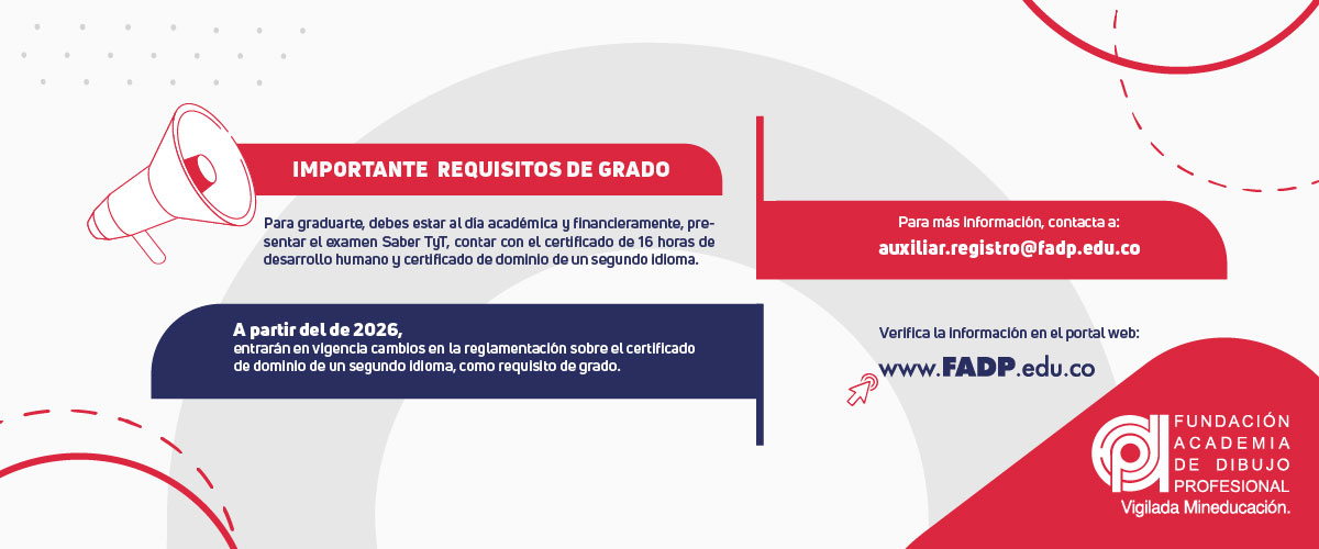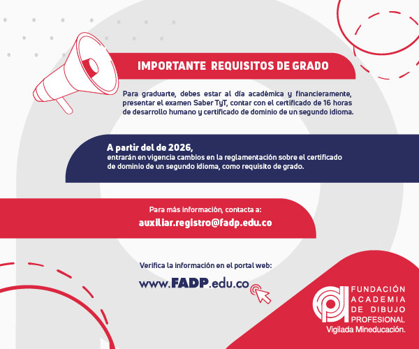 La FADP informa que, a partir del primer periodo académico de 2026, entrarán en vigencia los ajustes a la reglamentación sobre la presentación del certificado de dominio de un segundo idioma como requisito de grado.