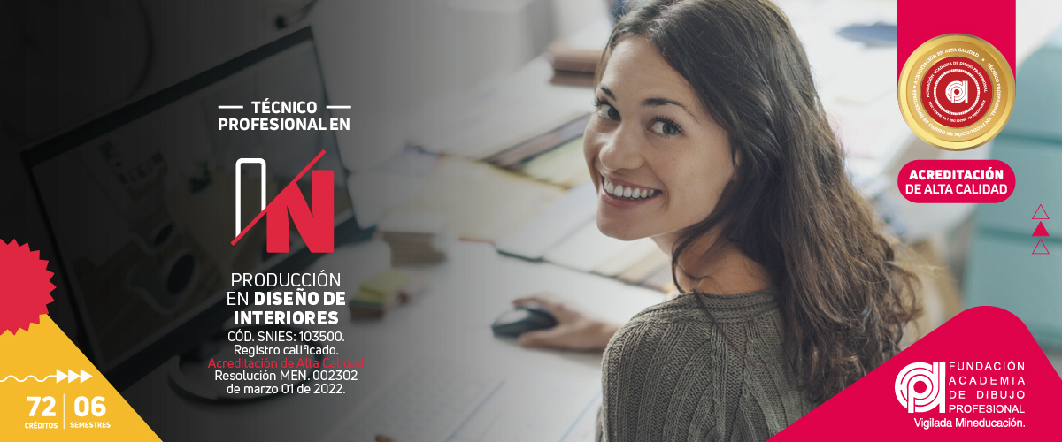 El Técnico Profesional en Producción en Diseño de Interiores de la Fundación Academia de Dibujo Profesional (FADP) desarrolla su formación integral a través del pensamiento creativo, innovador, crítico e interdisciplinar para participar activamente en el diseño, renovación, rehabilitación y ambientación de proyectos de interiorismo referidos al hábitat humano que incluye una variedad de usos y servicios como espacios de vivienda, lugares de trabajo, de comercio entre otros, además del diseño de mobiliario, diseño paisajístico, tratamiento acústico e iluminación a partir de la resolución de problemas desde lo funcional, técnico y estético con aptitud de liderazgo compromiso, conciencia social y principios de sostenibilidad con el fin de mejorar la habitabilidad. Sus competencias están fundamentadas con bases teóricas y técnicas que exigen un conocimiento de las características del espacio, el reconocimiento las necesidades de los usuarios, últimas tendencias en estilos, conocimientos de materiales y acabados además de técnicas de construcción y su costo y las competencias que le permiten representar y comunicar las características del espacio.